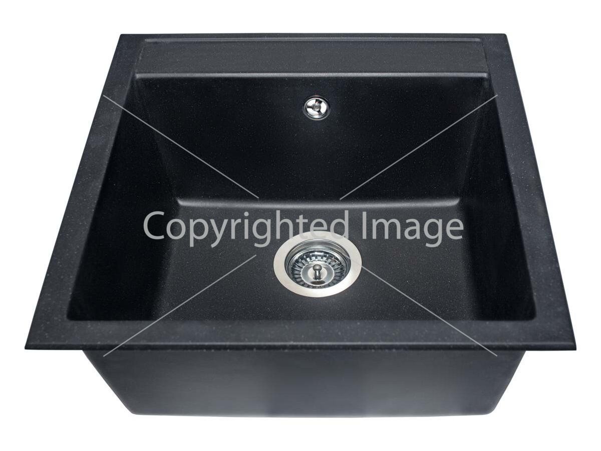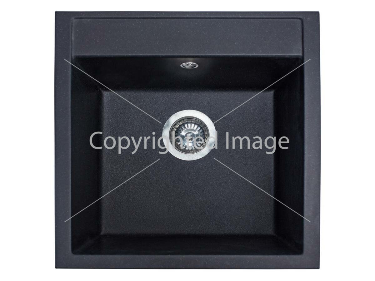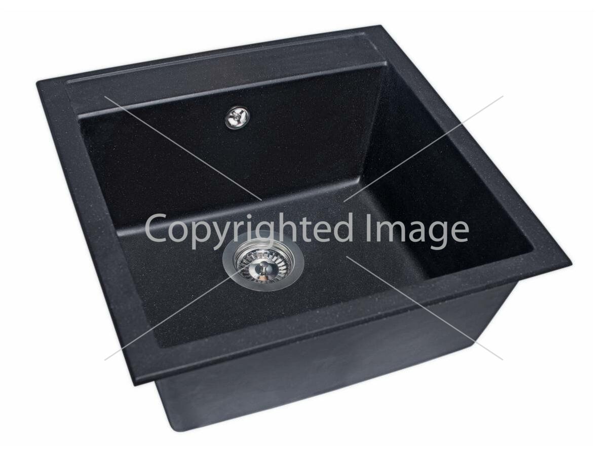 Чорна квадратна кухонна мийка з кварцового піску BODRUM 510 стане чудовим вибором для вашої кухні. Ця класична модель без крил має одну глибоку чашу. Дизайн моделі дозволяє вдало інтегрувати її практично у більшість сучасних кухонних гарнітурів. Мийка має врізний тип монтажу.