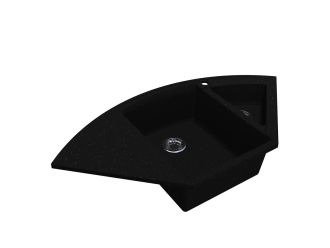 Чорна кутова кухонна мийка з кварцового піску EUROPE - це поєднання комфорту та практичності. Стане чудовим рішенням для невеликої кухні. Ця модель має одну основну чашу та невелику додаткову, а також ліворуч від чаші є крило. Додаткову чашу можна використовувати для миття овочів та фруктів, столових приладів або навіть для розморожування продуктів окремо від всього посуду. Мийка має врізний тип монтажу.