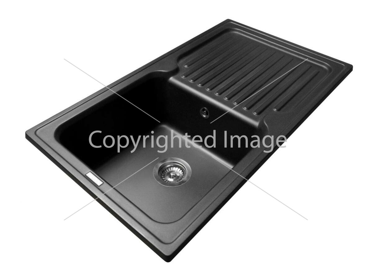 Чорна прямокутна кухонна мийка з кварцового піску ORLEAN має практичний дизайн із глибокою чашею та ребристим неслизьким крилом для посуду. Мийка має врізний тип монтажу.