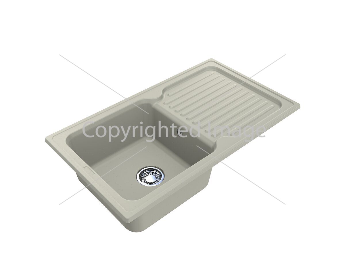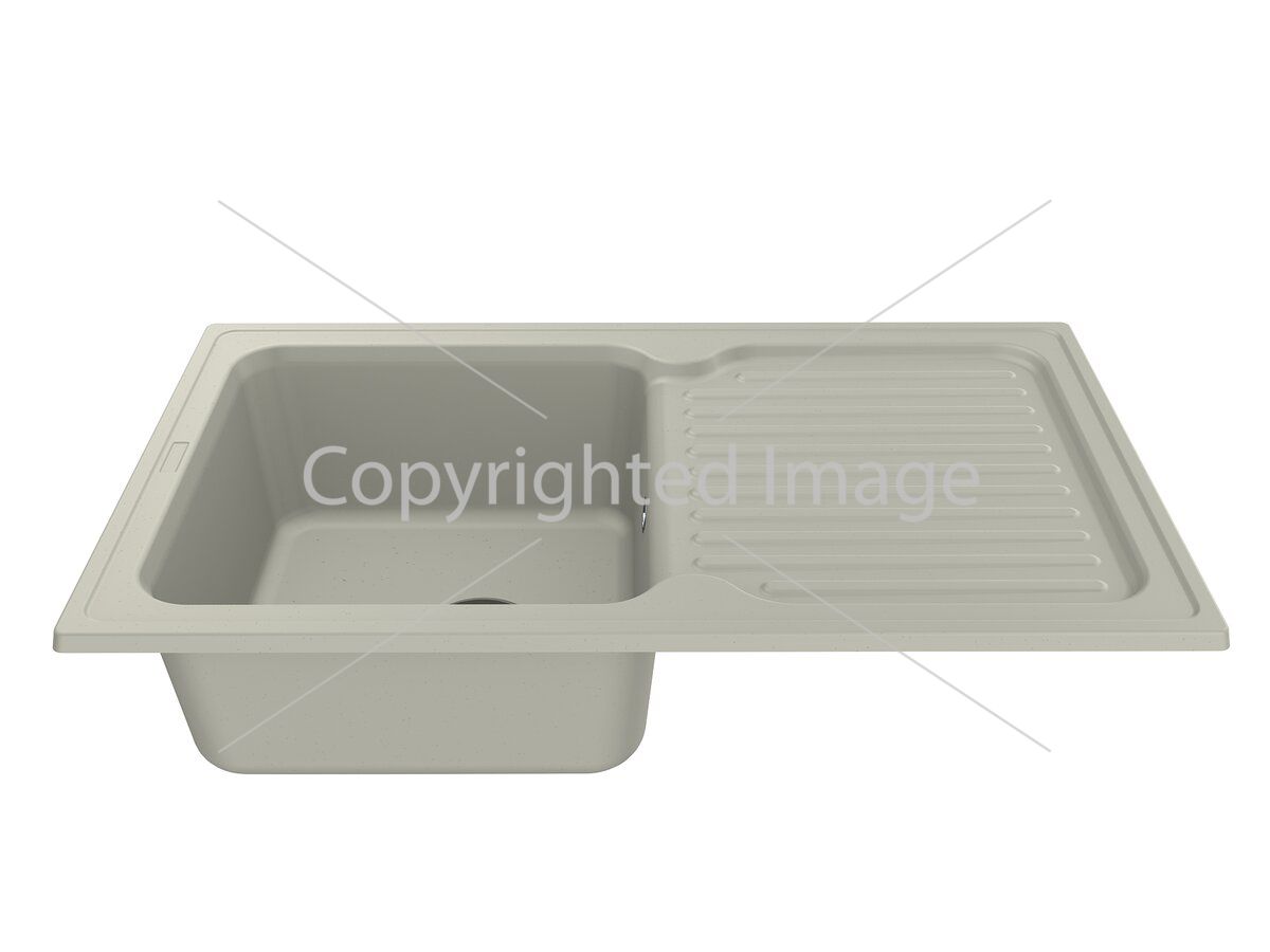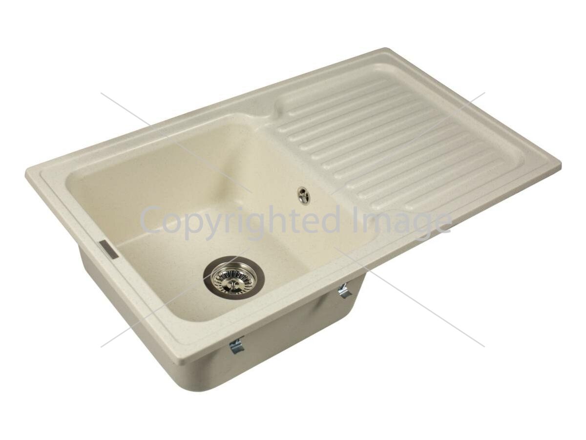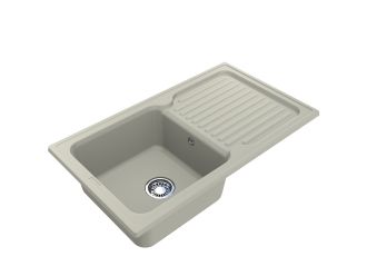 Прямокутна кухонна мийка з кварцового піску ORLEAN кольору жасмін має практичний дизайн із глибокою чашею та ребристим неслизьким крилом для посуду. Мийка має врізний тип монтажу.