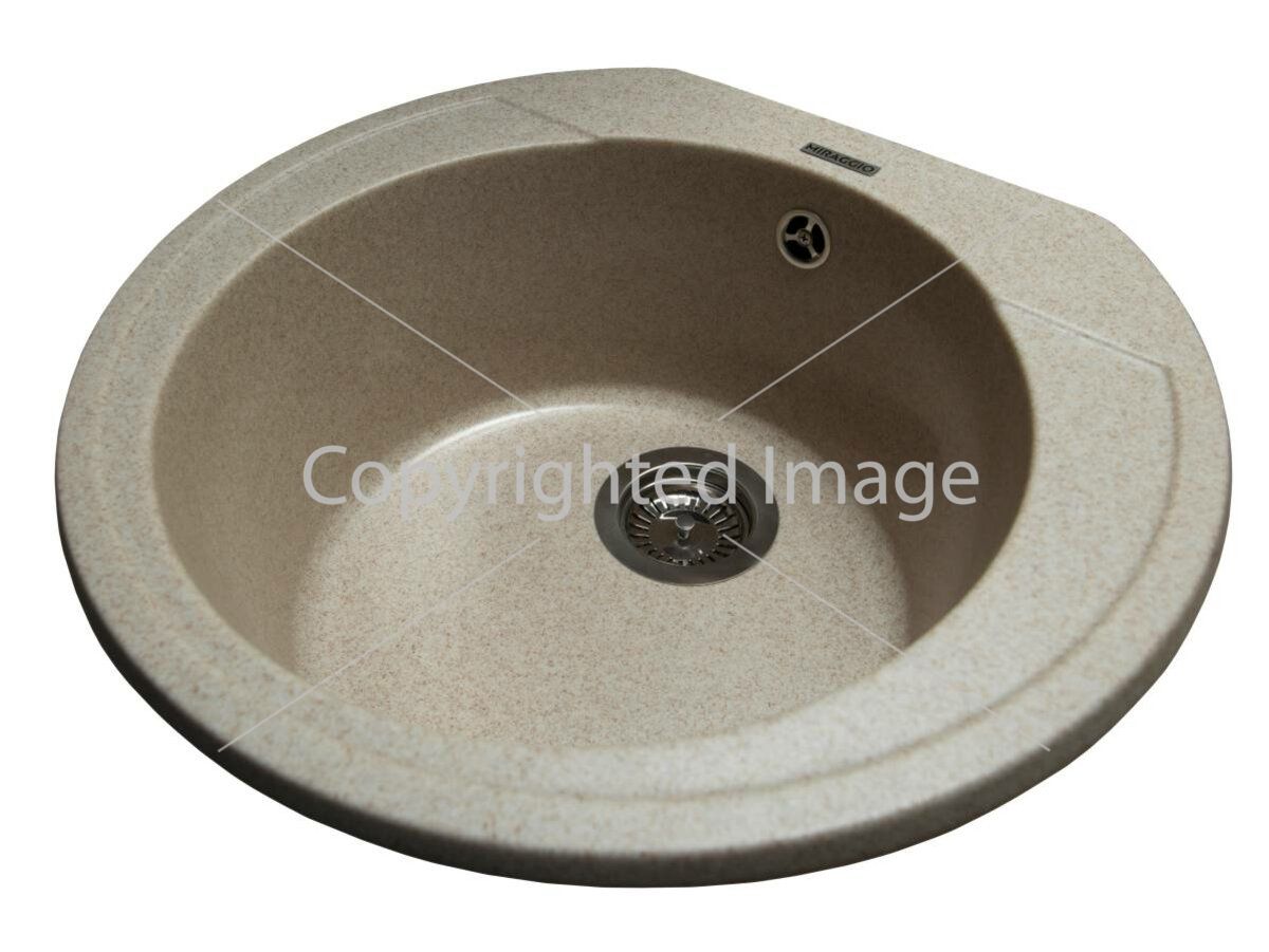 Кругла кухонна мийка з кварцового піску TULUZA в пісочному кольорі дуже містка, незважаючи на свої габарити. Біля змішувача можна поставити миючий засіб. Ця модель підійде під будь-який дизайн інтер'єру. Мийка має врізний тип монтажу.