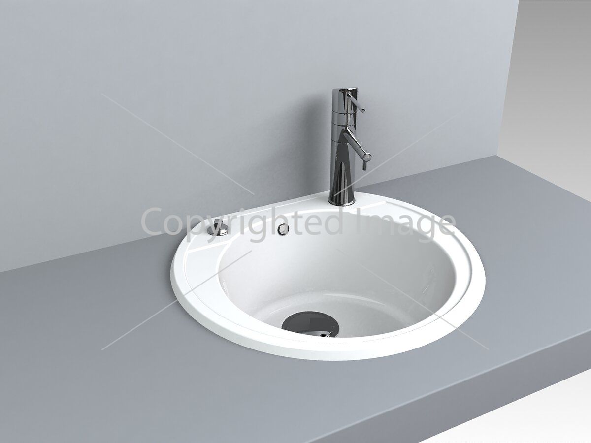 Біла кругла кухонна мийка з кварцового піску TULUZA дуже містка, незважаючи на свої габарити. Біля змішувача можна поставити миючий засіб. Ця модель підійде під будь-який дизайн інтер'єру. Мийка має врізний тип монтажу.