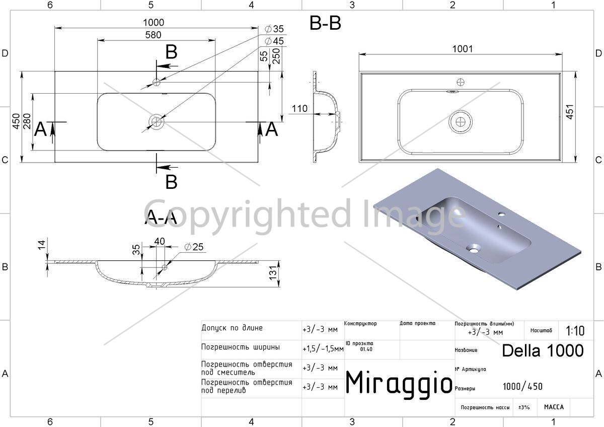 Заводской стандарт модели DELLA 1000 предусматривает отверстия под смеситель и перелив. Опционально можно заказать умывальник с одним из них или совсем без отверстий. Дополнительно донный клапан клик-клак можно заказать на сайте.