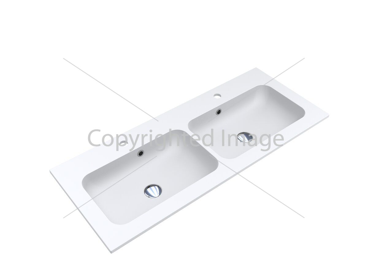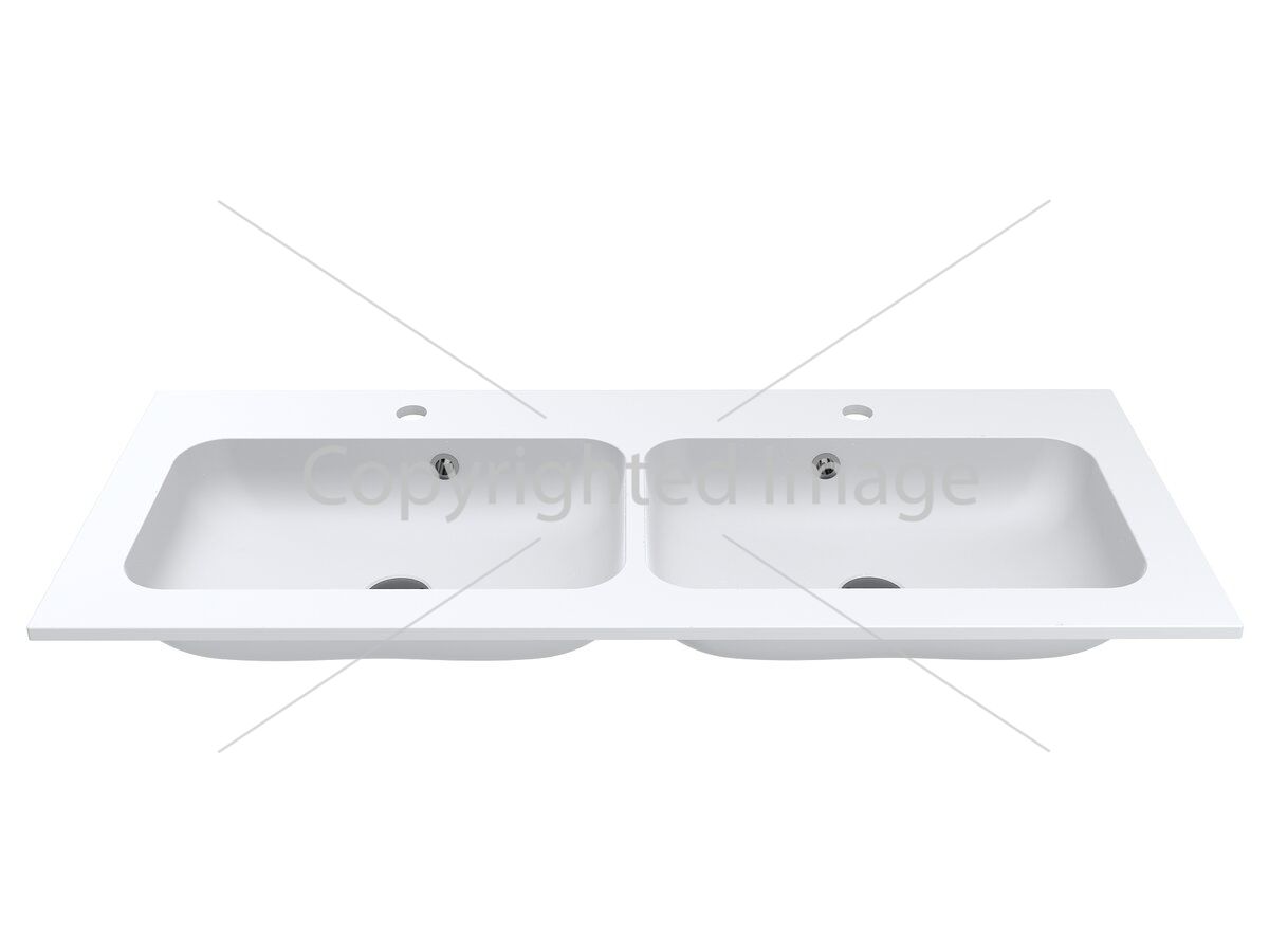 Матовий подвійний умивальник на тумбу DELLA 1100-2 MIRASOFT з прямокутними чашами - чудове рішення для великої родини. Широкі крила дозволяють комфортно розташувати банне приладдя та проводити гігієнічні процедури вдвох. Раковина має два отвори під змішувач та переливи у кожній чаші. Умивальник може бути встановлений накладним методом на тумбу або врізаний у полицю.