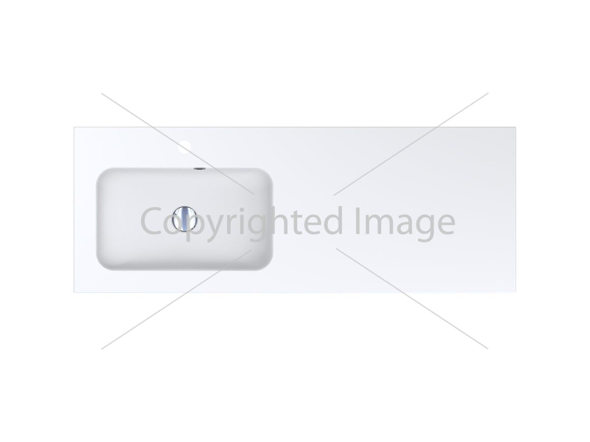 Умивальник з крилом DELLA 1200 L MIRASOFT - оригінальне та комфортне рішення для ванної кімнати! Прямокутна чаша зміщена вліво, що дозволяє розташувати під крилом пральну машину чи тумбу. Раковина має отвір під змішувач та перелив. Умивальник може бути встановлений накладним методом на тумбу або врізаний у полицю.