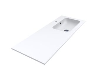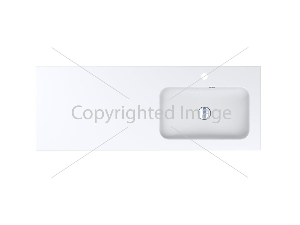Умивальник з крилом ліворуч DELLA 1200 R MIRASOFT - оригінальне та комфортне рішення, якщо Ви переважно користуєтеся лівою рукою! Прямокутна чаша зміщена праворуч, що дозволяє розташувати під крилом пральну машину або тумбу. Раковина має отвір під змішувач та перелив. Умивальник може бути встановлений накладним методом на тумбу або врізаний у полицю.