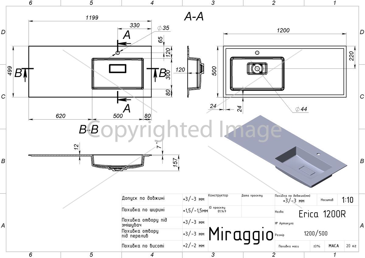 Умывальник ERICA 1200 R (MIRASOFT)