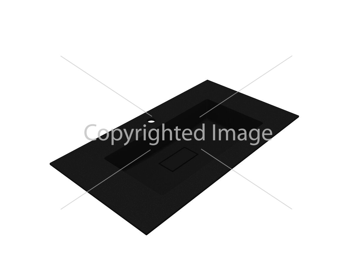 Матовий чорний умивальник ERICA 900 з кварцового піску ідеально доповнить ванну кімнату у сучасному стилі. Прямі кути чаші чітко повторюють чіткі лініі форми раковини. Широкі крила дозволяють організувати комфортний простір для косметики. Умивальник має накладний та врізний спосіб монтажу, тож легко встановлюється на прямокутну тумбу або може бути інстальований у стільницю. Отвір під злив прихований декоративною накладкою.