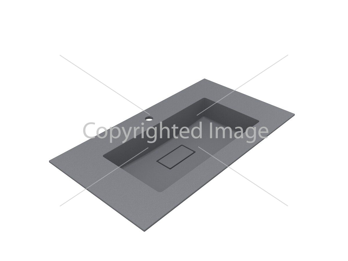 Матовий сірий умивальник ERICA 900 з кварцового піску ідеально доповнить ванну кімнату у сучасному стилі. Прямі кути чаші чітко повторюють чіткі лініі форми раковини. Широкі крила дозволяють організувати комфортний простір для косметики. Умивальник має накладний та врізний спосіб монтажу, тож легко встановлюється на прямокутну тумбу або може бути інстальований у стільницю. Отвір під злив прихований декоративною накладкою.