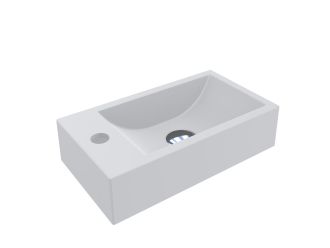 Матовий умивальник FARO R MIRASOFT прямокутної форми - функціональний аксесуар для невеликої ванної кімнати в класичному, сучасному або стилі мінімалізм. Оптимальне рішення для організації простору завдяки можливості встановити змішувач на крилі ліворуч від чаші. Умивальник має підвісний тип монтажу.