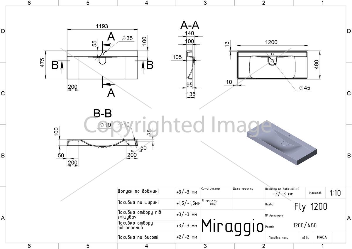 Сантехника MIRAGGIO производится по авторской технологии смешивания мраморной крошки и полиэфирной смолы в вакууме. Материал умывальника - MIRAMARBLE MATT. В ее структуре отсутствуют микропоры, что исключает развитие бактерий в толще стенок. Дополнительно изделие покрыто антибактериальным гелем. Продукция полируется пастой с матовым финишем. Поверхность умывальника матовая.