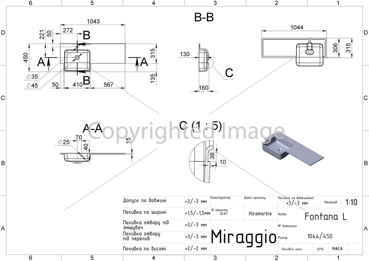 Сантехніка MIRAGGIO виробляється за авторською технологією змішування мармуровою крихти та поліефірної смоли в вакуумі.