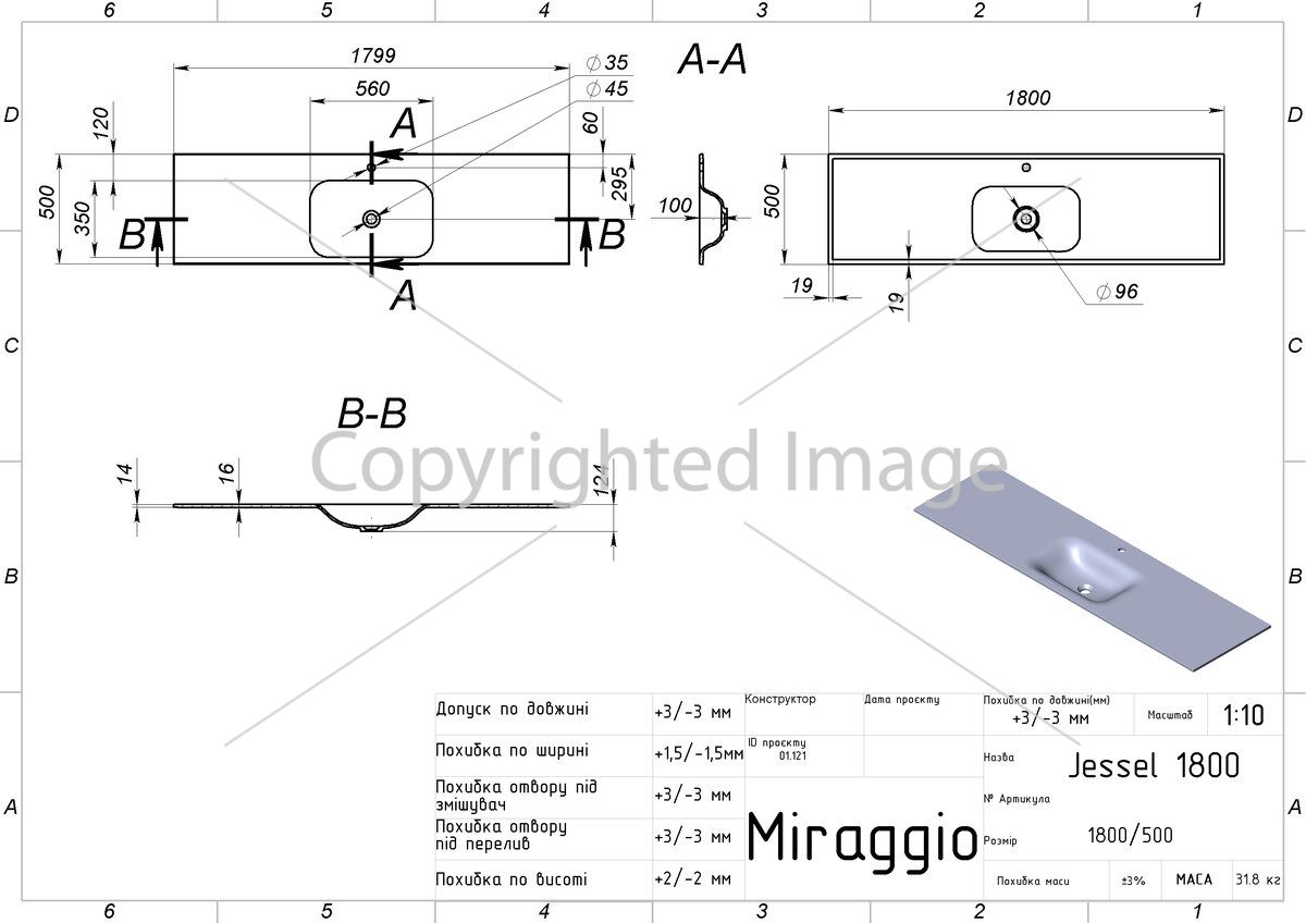 Меблевий умивальник з литого мармуру JESSEL 1800 - новинка 2023 года! Це найдовша модель в лінійці MIRAGGIO та довгоочікувана відповідь на запит наших клієнтів. Раковина розташовано ідеально посередині широких крил, де зручно розмістити необхідні аксесуари та гігієнічні засоби. Основна перевага даної моделі – її можна обрізати з двох боків під індивідуальні розміри для вашої ванної кімнати. Умивальник передбачає накладний або врізний тип монтажу.