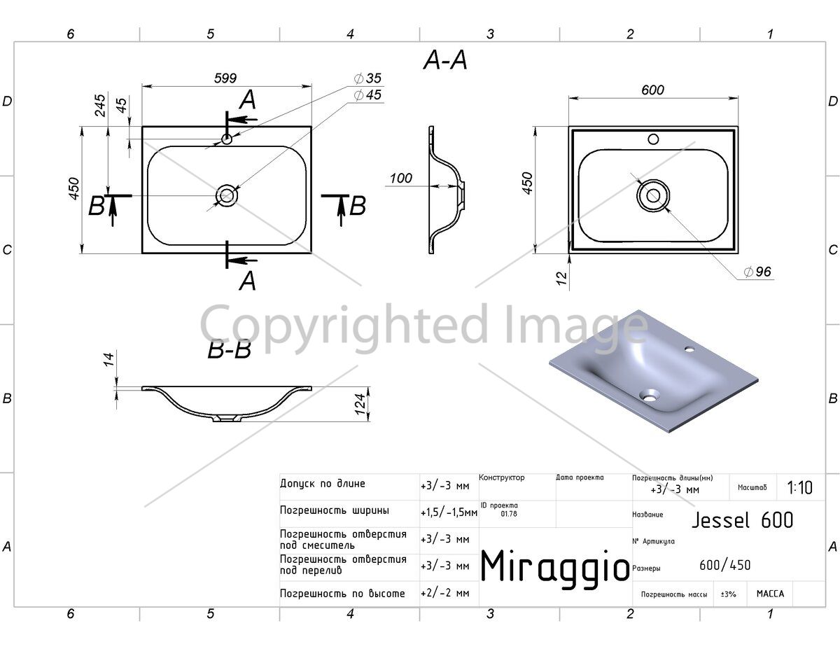 Заводской стандарт модели JESSEL 600 предусматривает отверстие под смеситель. Опционально можно заказать умывальник без отверстия. Дополнительно донный клапан клик-клак можно заказать на сайте.