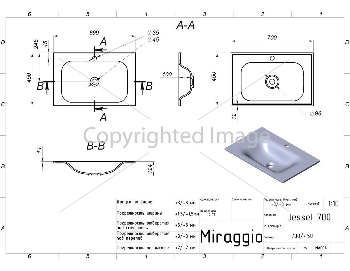 Заводской стандарт модели JESSEL 700 предусматривает отверстие под смеситель. Опционально можно заказать умывальник без отверстия. Дополнительно донный клапан клик-клак можно заказать на сайте.