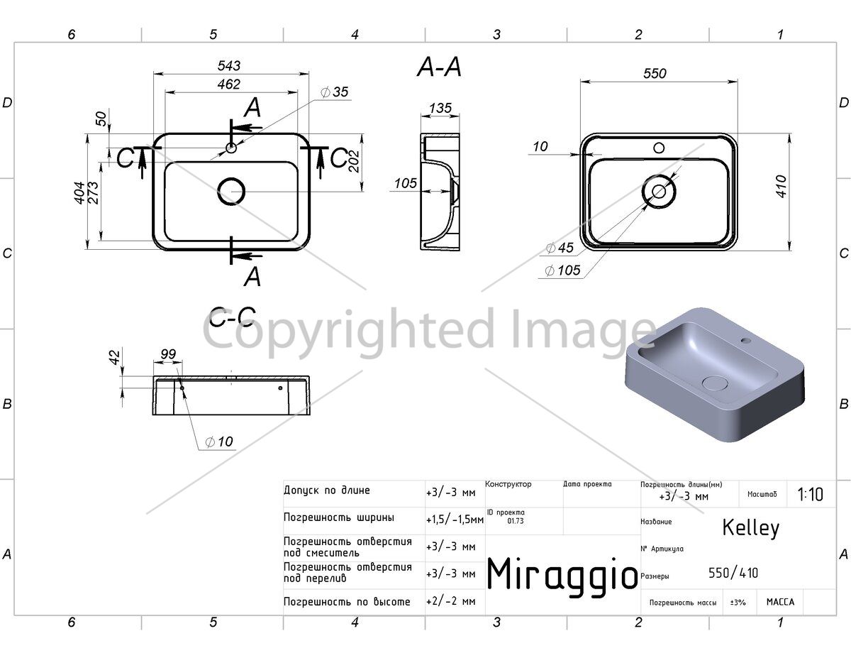 Модель KELLEY также может быть изготовлена в технологиях MIRAMARBLE и MIRAMARBLE MATT.