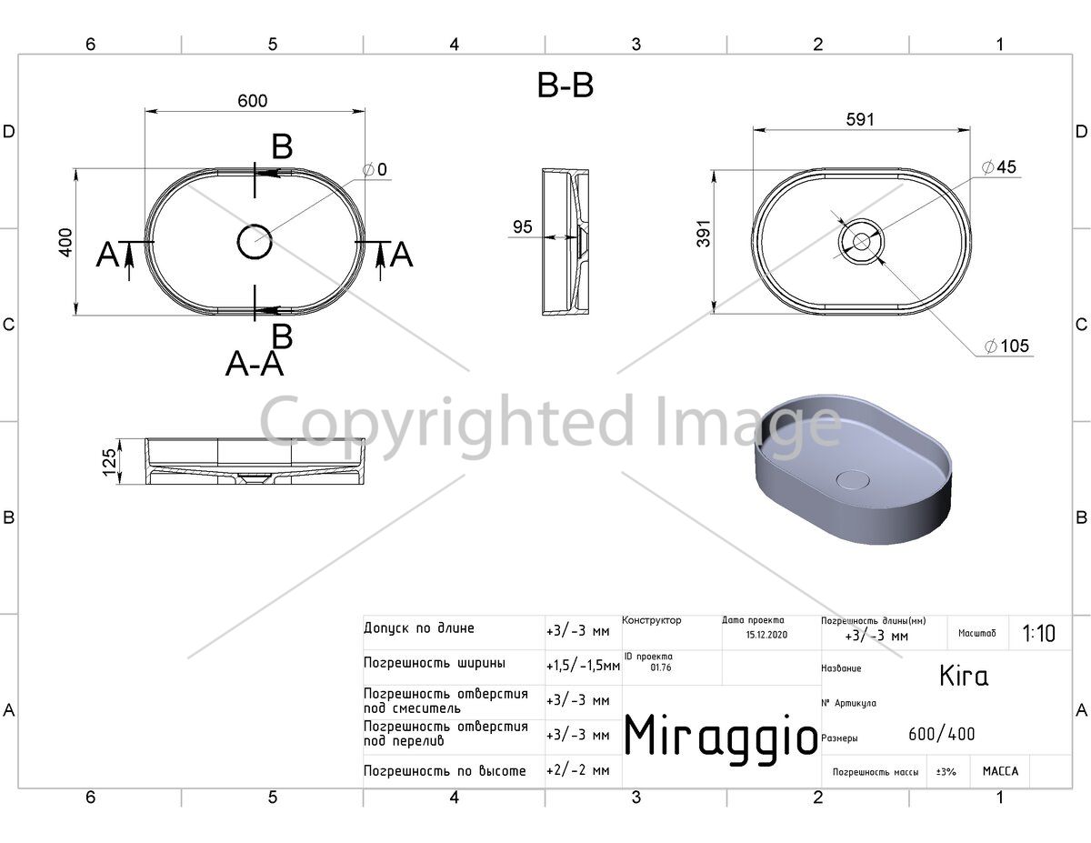 Сантехника MIRAGGIO производится по авторской технологии смешивания мраморной крошки и полиэфирной смолы в вакууме. Материал умывальника - MIRAMARBLE MATT. В ее структуре отсутствуют микропоры, что исключает развитие бактерий в толще стенок. Дополнительно изделие покрыто антибактериальным гелем. Продукция полируется пастой с матовым финишем. Поверхность умывальника матовая.