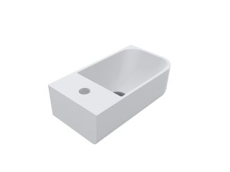 Компактний матовий умивальник з литого мармуру KO R - ідеальний варіант для маленької ванної кімнати. Попри невеликий розмір, містка чаша та заокруглений зовнішній кут забезпечують функціональність та елегантність моделі. Має підвісний або накладний тип монтажу.