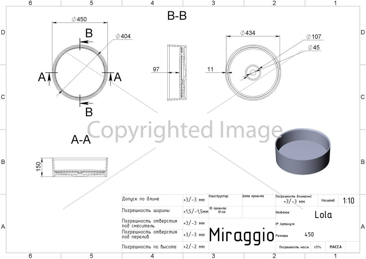 Заводской стандарт модели LOLA не предусматривает отверстия под смеситель и перелив. При необходимости, запасную накладку на слив можно заказать на сайте.