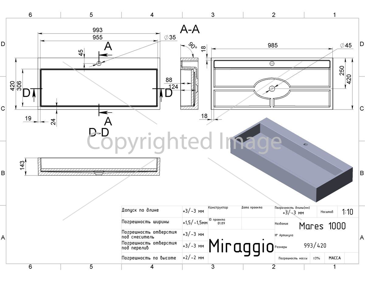 Заводской стандарт модели MARES 1000 предусматривает отверстие под смеситель. Опционально можно заказать умывальник без отверстия. При необходимости, запасную накладку на слив можно заказать на сайте.