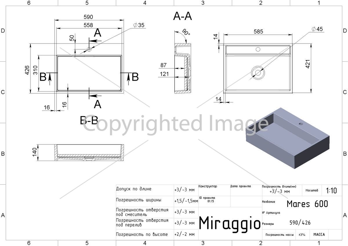 Умывальник MARES 600C (MIRASOFT)