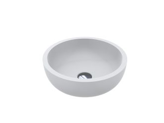 Компактний матовий круглий умивальник MARK 375 MIRASOFT - привабливе та функціональне рішення для маленької ванної кімнати. Передбачає окремостоячий або настінний змішувач. Має накладний тип монтажу.