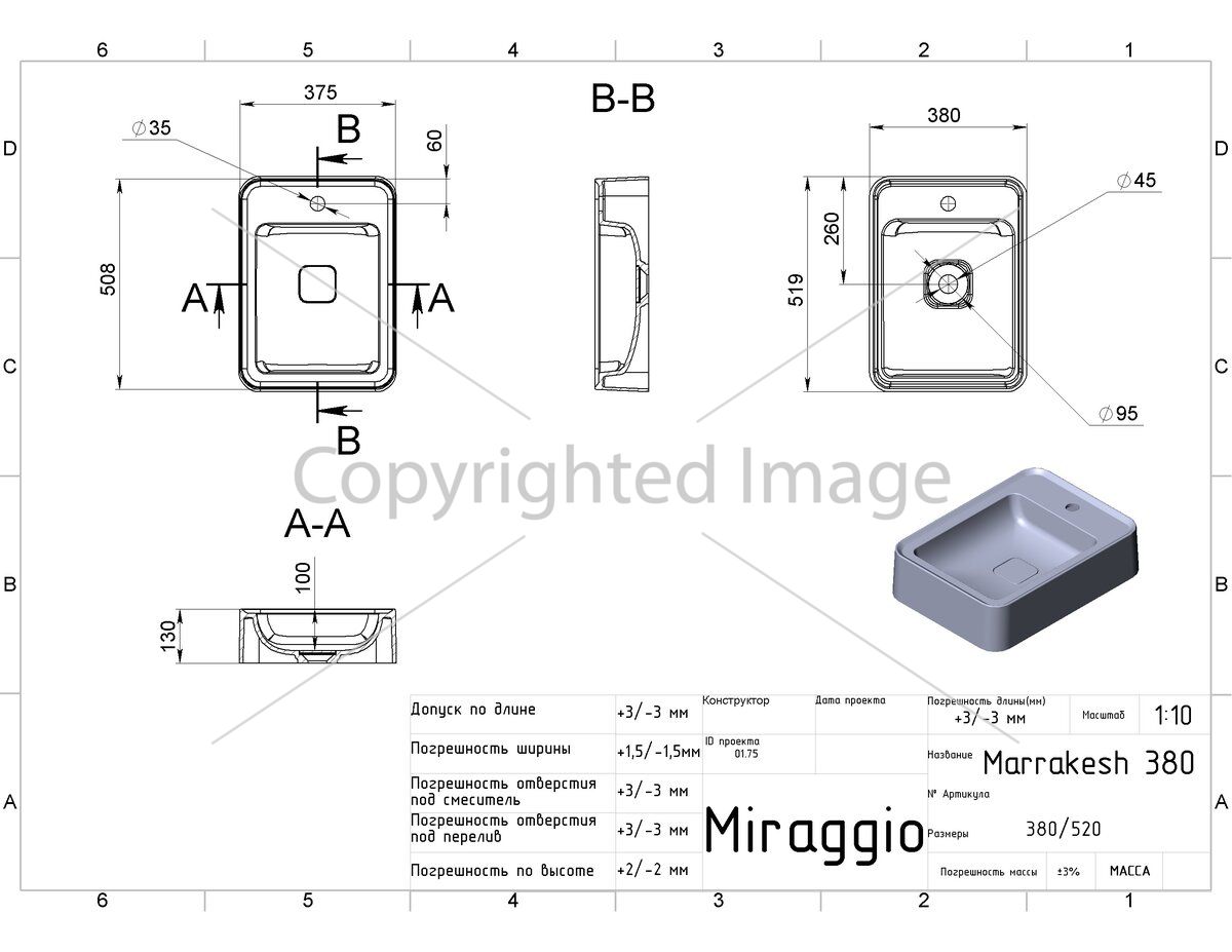 Сантехника MIRAGGIO производится по авторской технологии смешивания боксита* и полиэфирной смолы в вакууме. Материал раковины - MIRASOFT. Изделие имеет однородную структуру на всю толщину стенок, без дополнительного покрытия. В материале умывальника отсутствуют микропоры, что исключает развитие бактерий внутри и на поверхности стенок. Поверхность раковины - матовая.