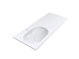 Умивальник із литого мармуру NEW YORK L на тумбу – практичне рішення для ванної кімнати. Овальна чаша зміщена вліво, а широке крило можна використовувати як стільницю. Під крилом зручно розмістити пральну машинку чи комод. Має накладний тип монтажу. Отвір під злив приховано декоративною накладкою.