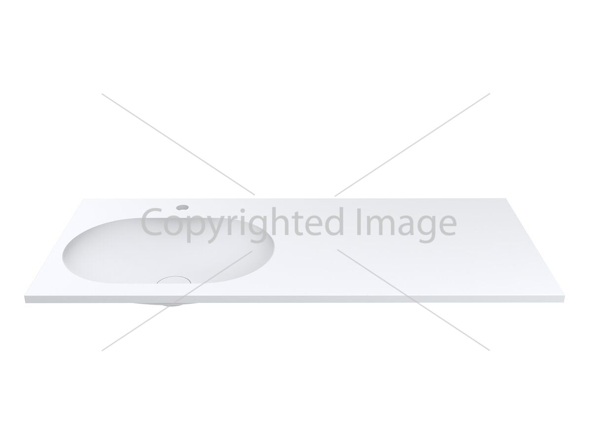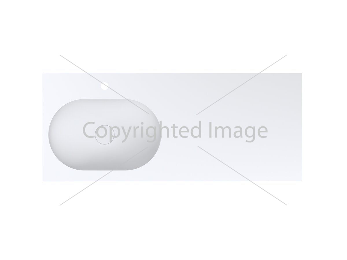 Матовий умивальник NEW YORK L MIRASOFT на тумбу – практичне рішення для ванної кімнати. Овальна чаша зміщена вліво, а широке крило можна використовувати як стільницю. Під крилом зручно розмістити пральну машинку чи комод. Має накладний тип монтажу. Отвір під злив приховано декоративною накладкою.