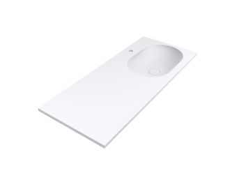 Матовий умивальник NEW YORK R на тумбу MIRASOFT – поєднання краси та комфорту. Модель допомагає ефективно використати простір ванної кімнати. Овальна чаша зміщена праворуч, а широке крило можна використовувати як стільницю. Під крилом зручно розмістити пральну машинку чи комод. Має накладний тип монтажу. Отвір під злив прихований декоративною накладкою.