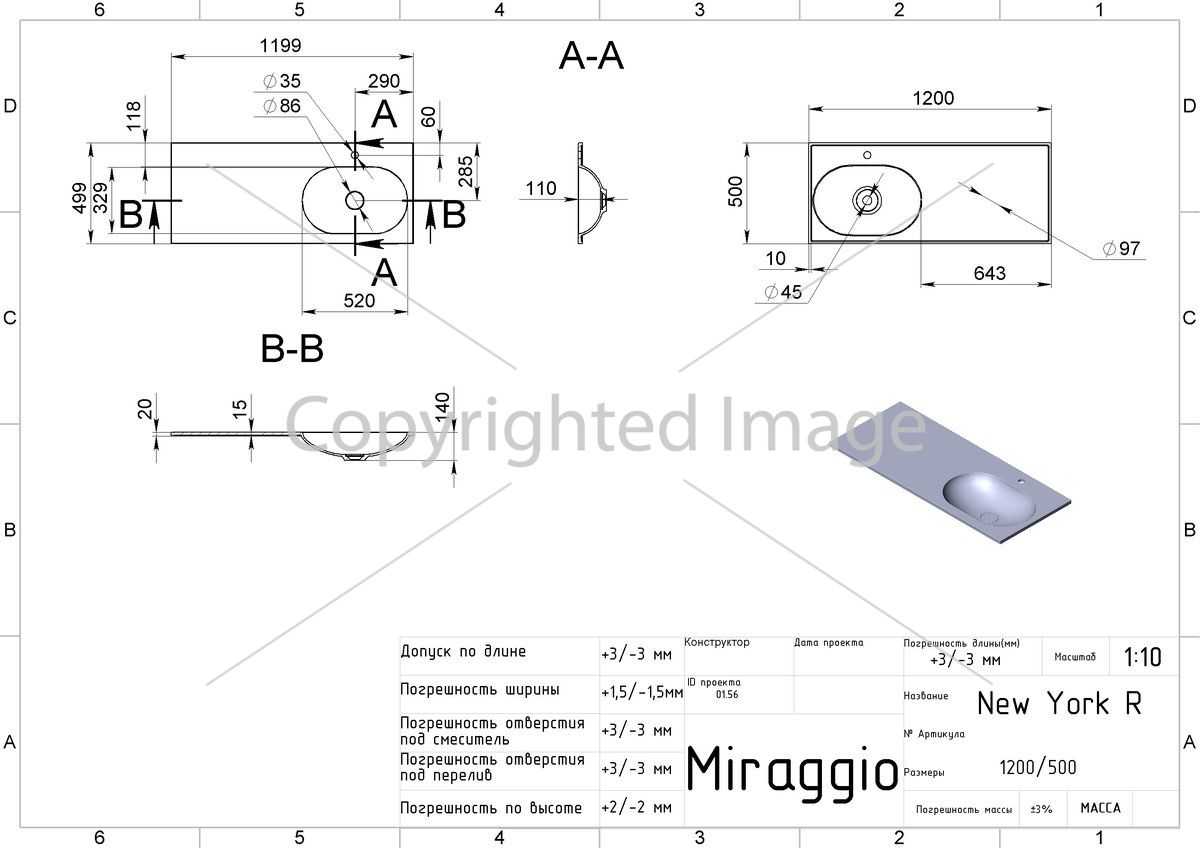 Умывальник NEW YORK R (MIRASOFT)