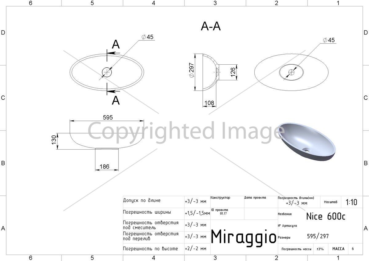 Сантехника MIRAGGIO производится по авторской технологии смешивания боксита* и полиэфирной смолы в вакууме. Материал раковины - MIRASOFT. Изделие имеет однородную структуру на всю толщину стенок, без дополнительного покрытия. В материале умывальника отсутствуют микропоры, что исключает развитие бактерий внутри и на поверхности стенок. Поверхность раковины - матовая.