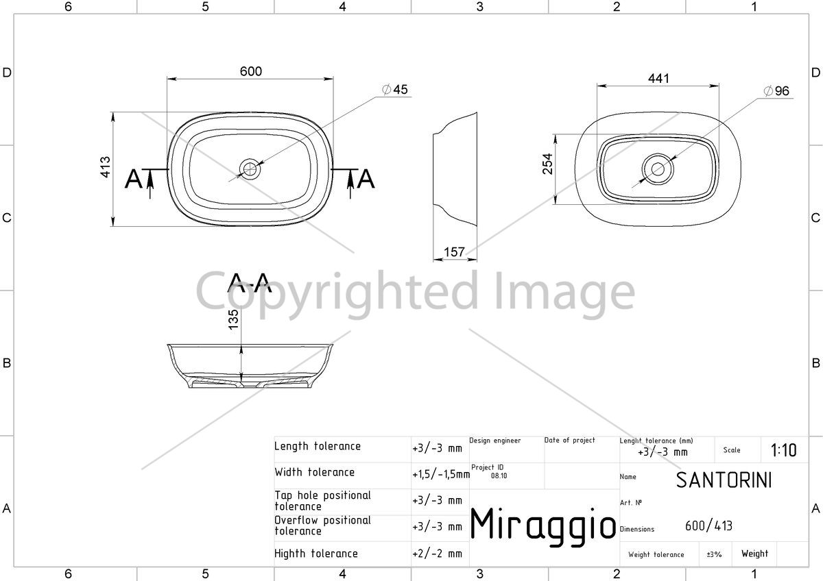 Сантехника MIRAGGIO производится по авторской технологии смешивания мраморной крошки и полиэфирной смолы в вакууме. Материал умывальника - MIRAMARBLE MATT. В ее структуре отсутствуют микропоры, что исключает развитие бактерий в толще стенок. Дополнительно изделие покрыто антибактериальным гелем. Продукция полируется пастой с матовым финишем. Поверхность умывальника матовая.