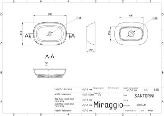 Заводський стандарт моделі SANTORINI не передбачає отвори під змішувач та перелив. Додатково донний клапан клік-клак можна замовити на сайті.