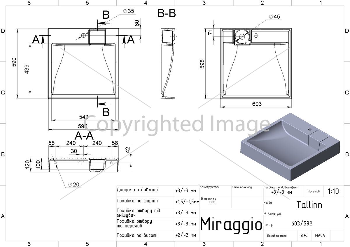 Сантехника MIRAGGIO производится по авторской технологии смешивания мраморной крошки и полиэфирной смолы в вакууме. Материал умывальника - MIRAMARBLE MATT. В ее структуре отсутствуют микропоры, что исключает развитие бактерий в толще стенок. Дополнительно изделие покрыто антибактериальным гелем. Продукция полируется пастой с матовым финишем. Поверхность умывальника матовая.