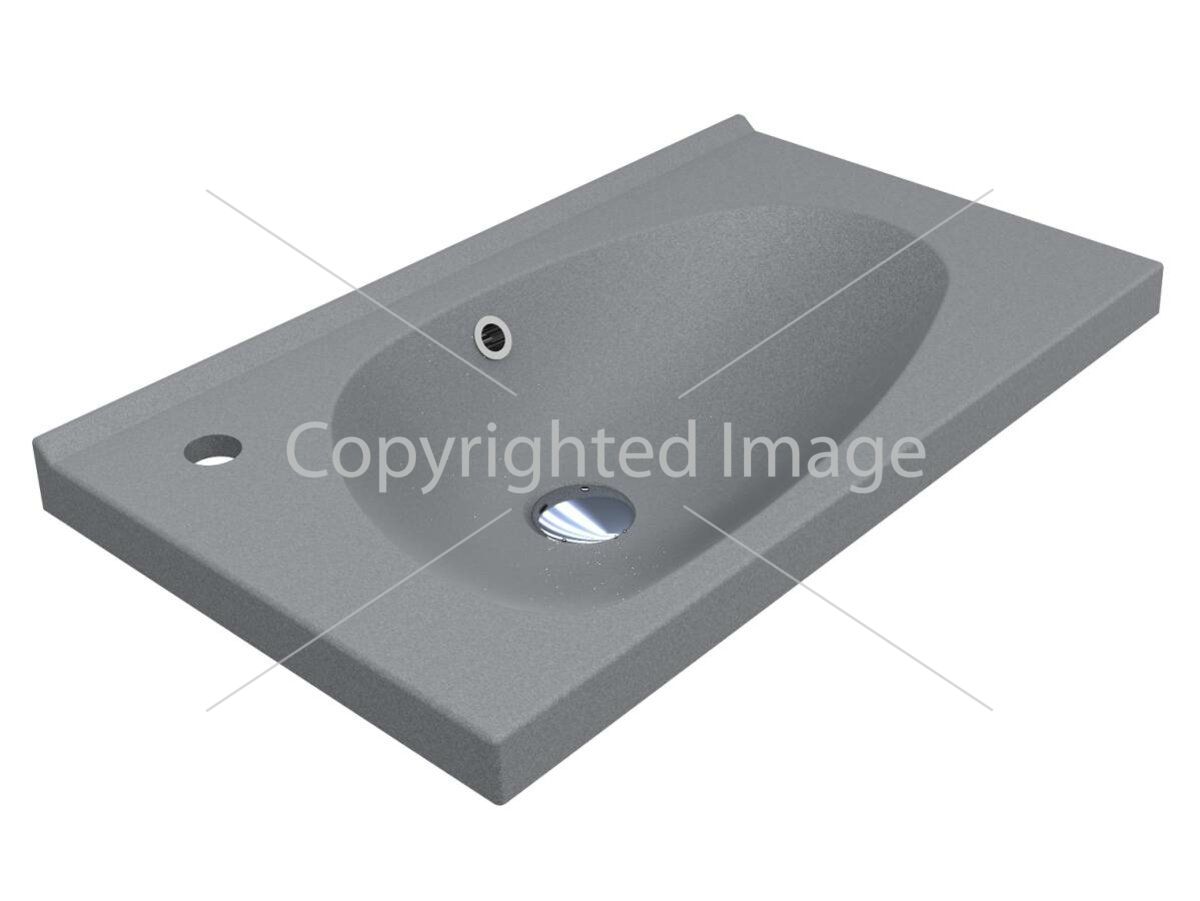 Нестандартна сіра раковина з кварцового піску TITANIA стане оригінальним доповненням дизайну ванної кімнати. Неправильної форми чаша в масивній мармуровій плиті, кутове розташування отвору під змішувач, велике місце навколо чаші для розміщення косметичних засобів - в цій моделі привертає увагу кожна деталь. Умивальник кріпиться на тумбу. Передбачає кілька варіантів монтажу - накладний та врізний.