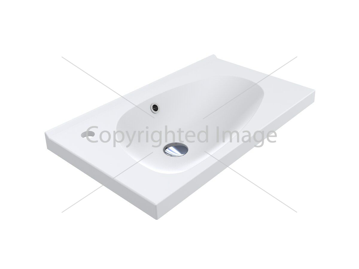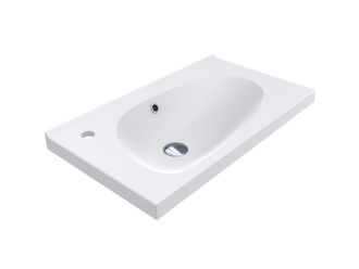 Заводской стандарт модели TITANIA предусматривает отверстия под смеситель и перелив. Опционально можно заказать умывальник с одним из них или совсем без отверстий. Дополнительно донный клапан клик-клак можно заказать на сайте.