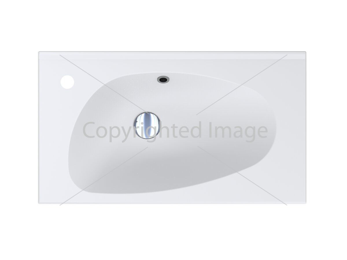 Заводской стандарт модели TITANIA предусматривает отверстия под смеситель и перелив. Опционально можно заказать умывальник с одним из них или совсем без отверстий. Дополнительно донный клапан клик-клак можно заказать на сайте.