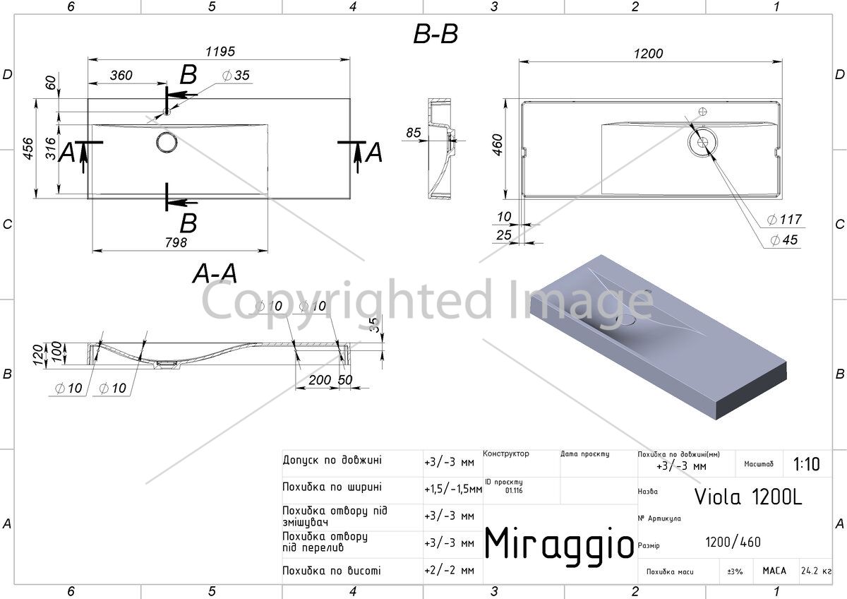 Заводской стандарт модели VIOLA 1200 L предусматривает отверстие под смеситель. Опционально можно заказать умывальник без отверстия. При необходимости, запасную накладку на слив для можно заказать на сайте.