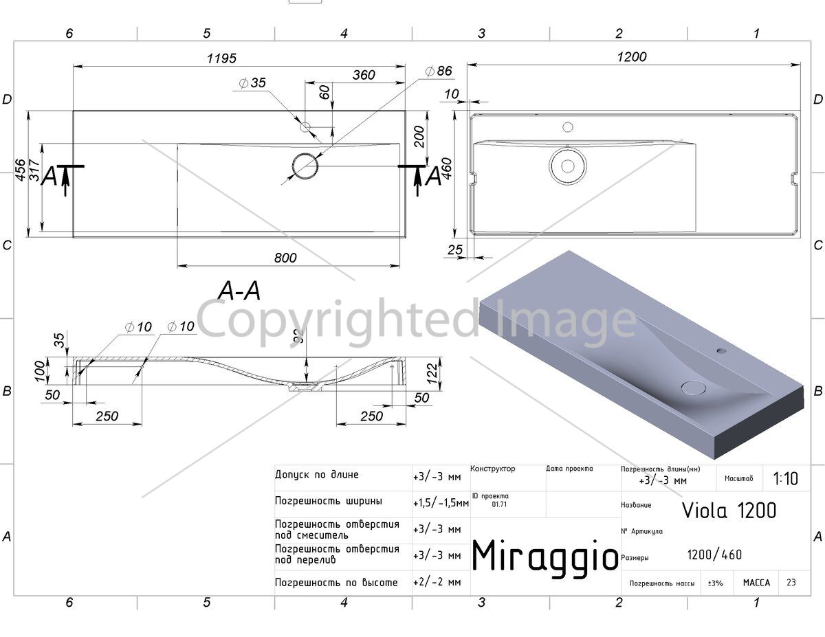 Умывальник VIOLA 1200 R (MIRASOFT)