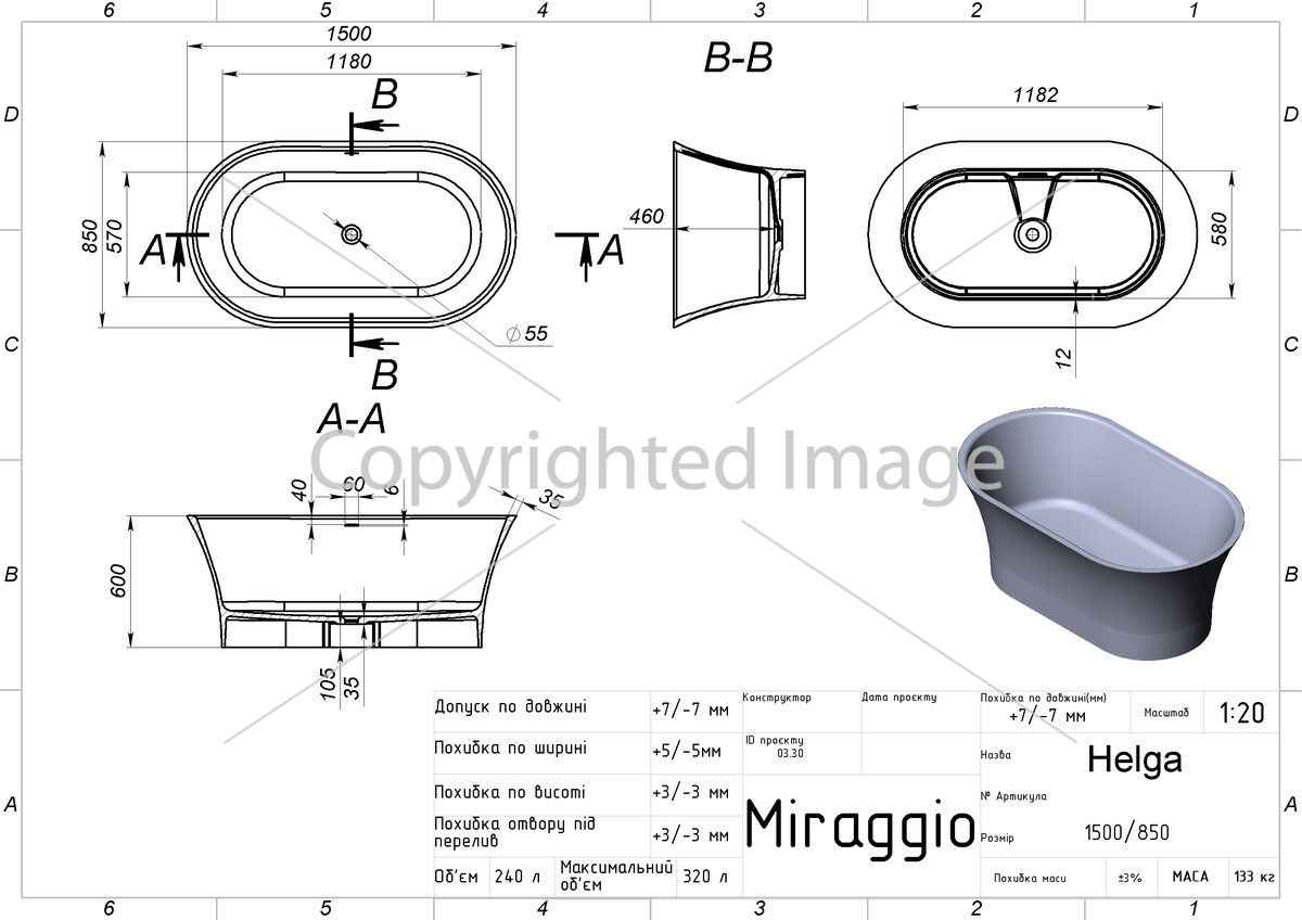 Матова овальна ванна острівного типу HELGA MIRASOFT - ідеальний варіант для компактної ванної кімнати. Тюльпановидна форма та потовщений до краю борт підкреслюють одночасно витонченість та функціональну зручність ванни.