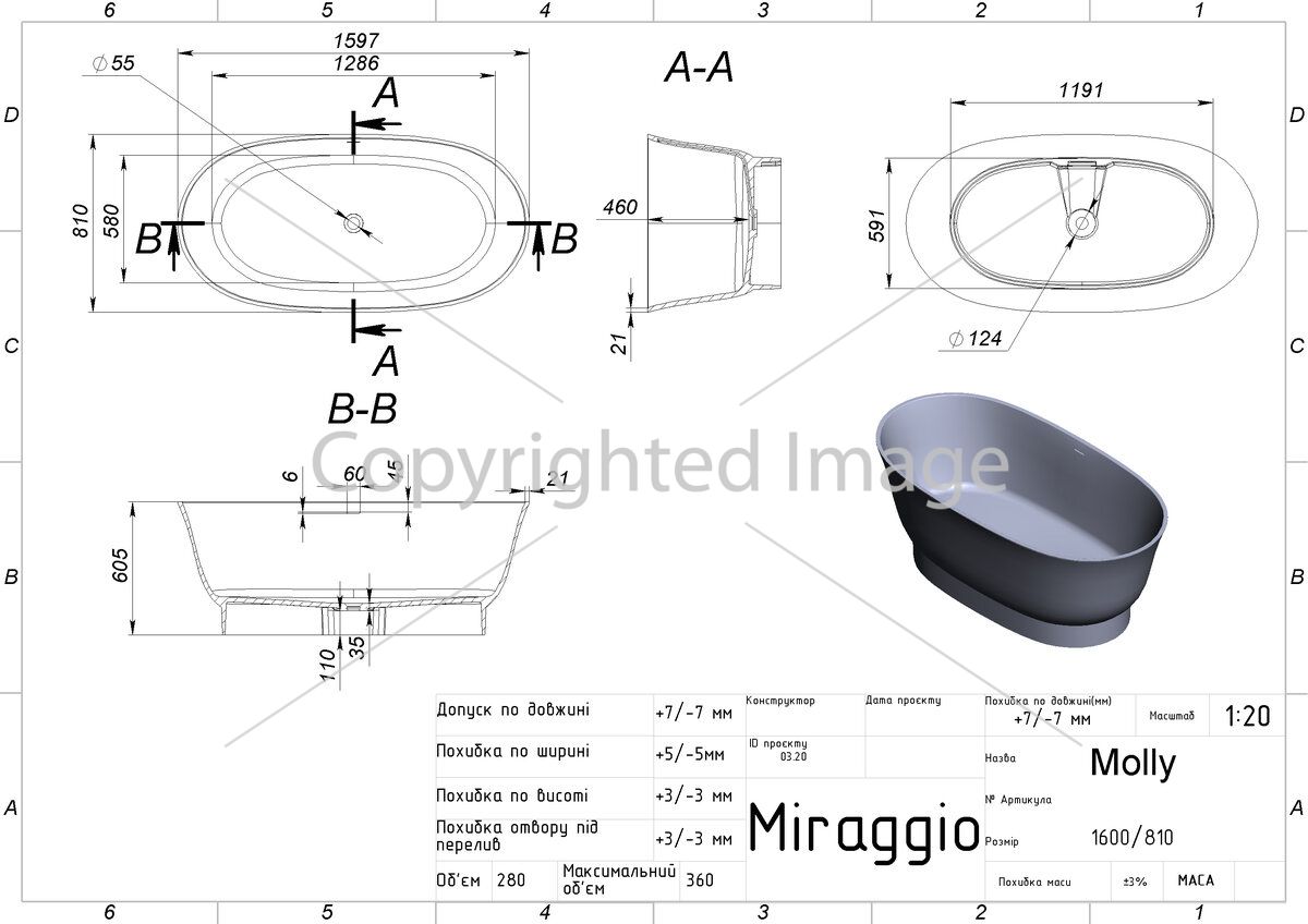 Матовая отдельно стоящая ванна MOLLY от производителя носит титул “мисс компактность” в коллекции MIRAGGIO. Мы понимаем, что большинство стандартных квартир и домов не предусматривает просторную ванную комнату. Именно поэтому мы дарим вам возможность релаксировать при любых условиях. Форма ванны - овал.